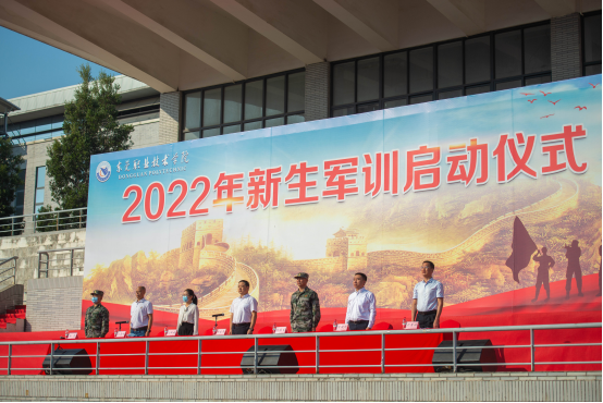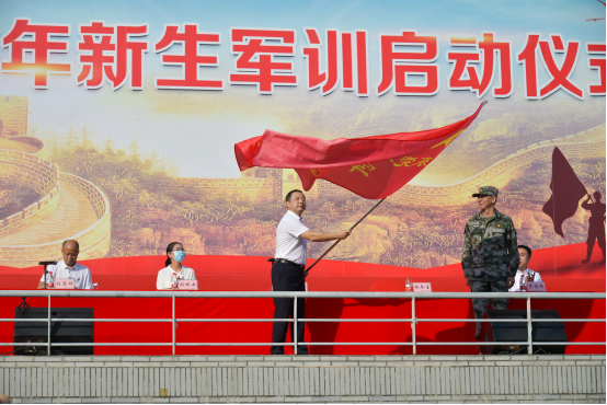 会议最后,副校长杨云奇向军训团授旗,军训团团长林冬生代表军训团接旗。随后,副校长杨云奇宣布开营,2022级新生军训正式拉开大幕。