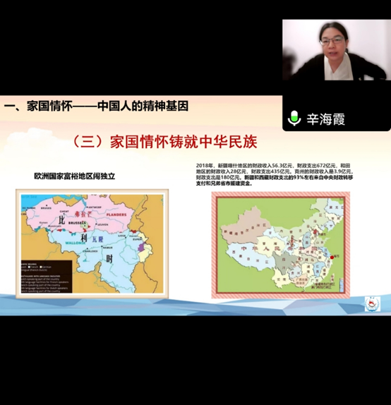 家国情怀是思政教育的价值归旨,也是课堂思政化的灵魂。为了让学生在学习中追忆峥嵘岁月、重温红色基因,10月9日晚,学前教育与人文学院院长辛海霞以“传承家国情怀,立志成才报国”为题,以线上形式给2022级全体新生讲授了思政第一课。