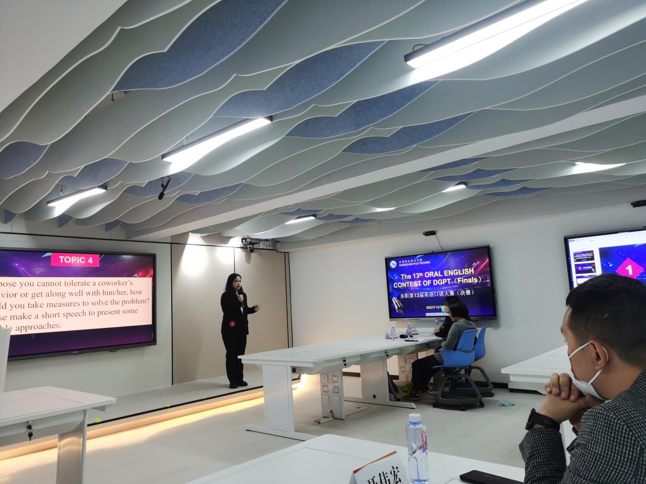 12月7日晚上,由校团委主办、商贸学院承办,英语沙龙协会协办的第13届英语口语比赛(决赛)在商务英语智训空间举行,东莞唯盛教育总经理聂伟宏、商贸学院副院长徐兰出席此次比赛。