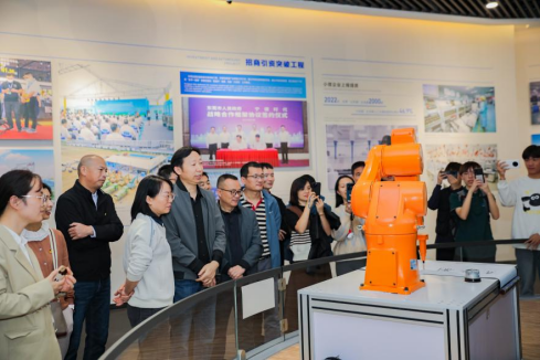 智能制造装备技术专业李霖博士在展厅现场开展了以《感悟东莞制造 凝聚奋进力量》为主题的思政课堂,他讲到:“从‘三来一补’到制造名城,我感受到东莞‘海纳百川 厚德务实’的城市底蕴,感受到东莞的人文历史和人才沉淀,感受到劳模精神、劳动精神和工匠精神——这些都是东莞制造产业持续发展的精神动力之源。有幸,我们在大湾区,我们在东莞松山湖,这里得天独厚的制造产业优势让我们跟时代浪潮共振、与制造企业互动。当我们把深爱的智能制造教育与东莞的发展相融合,就将为我们学校、为我们所在的美好城市,创造更具魅力的未来。”